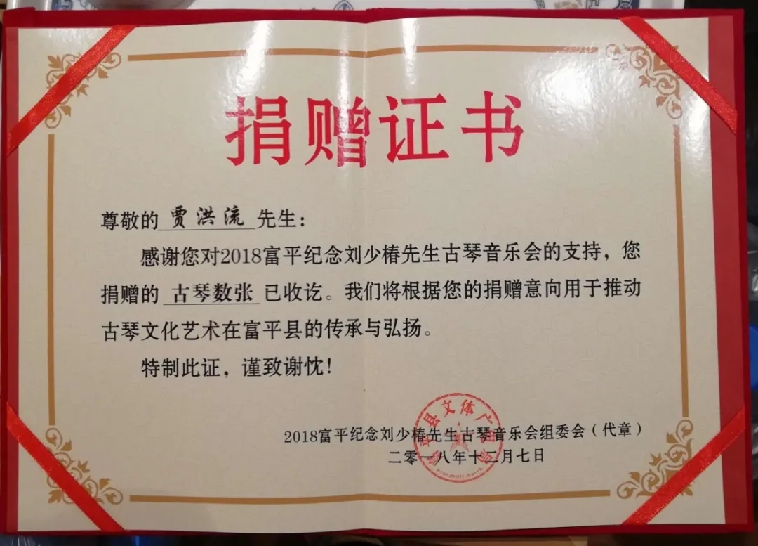 “富平纪念刘少椿先生古琴音乐会”举行时,中昊捐赠了古琴、琴桌。