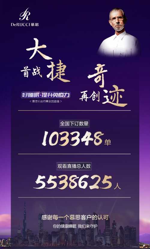 近日,高端睡眠品牌慕思变身“网红”首战直播,以健康睡眠知识普及与特惠产品销售的方式,向千万业主送去另类抗疫方法。截至3月3日,慕思直播活动共计吸引共计超550万观众在线收看,全国共计下定共103348单。
