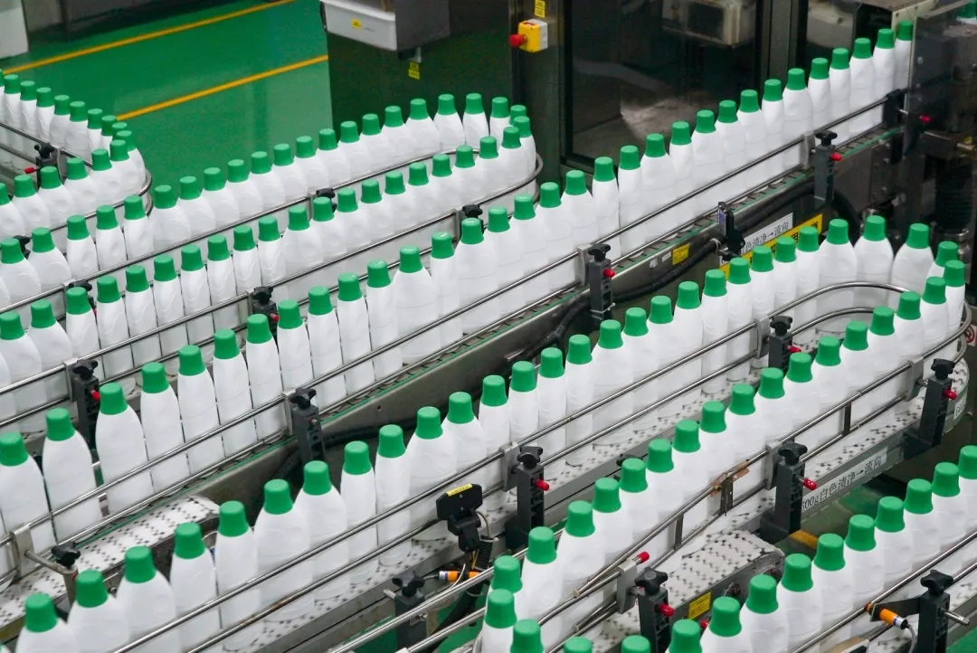 全速运行的蓝月亮84消毒液生产线