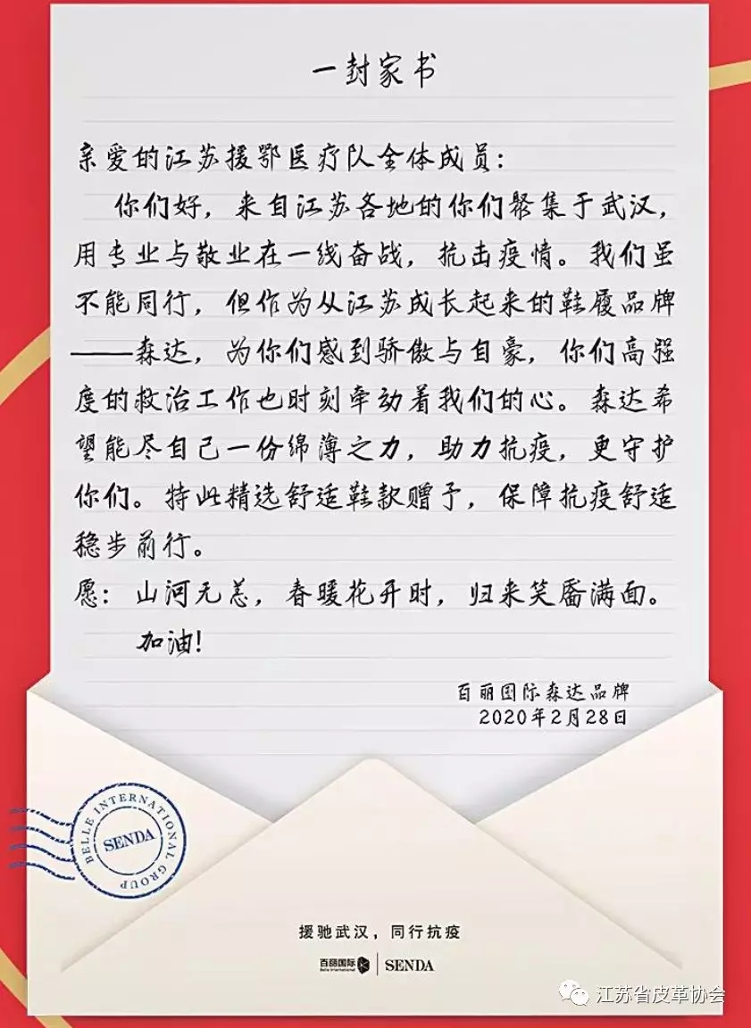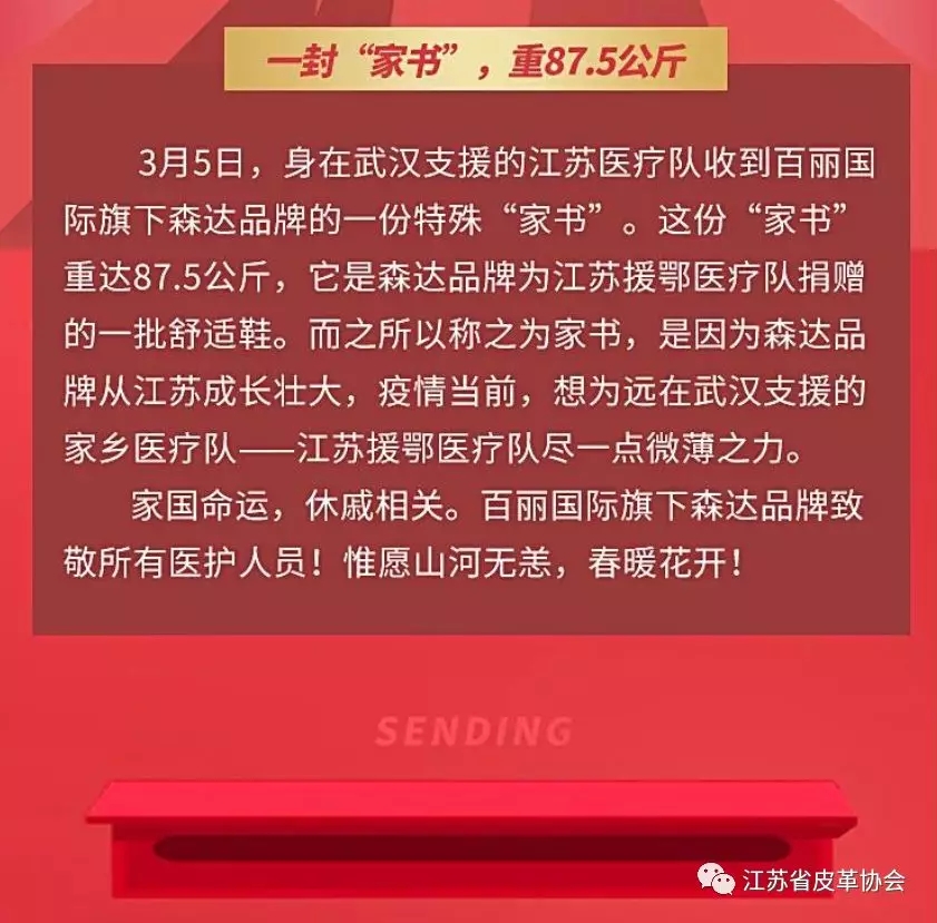 江苏新森达鞋业为奋战在黄石抗疫一线的江苏援鄂医疗队送上一封重84.5公斤的特殊“家书”