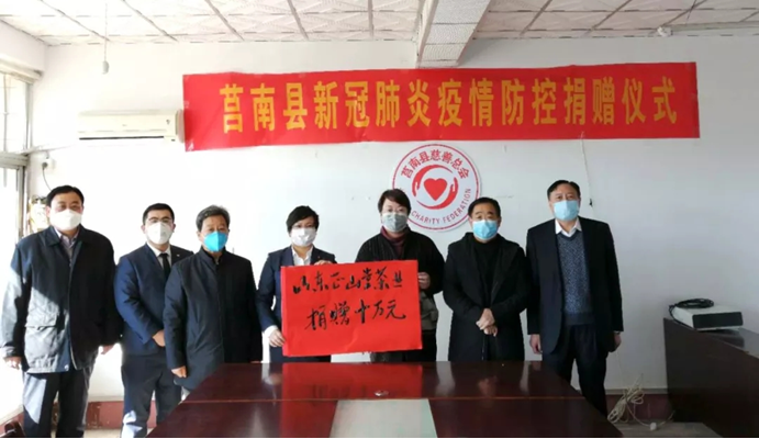 2月17日,山东正山堂茶业有限公司通过莒南县慈善总会,向洙边镇疫病防治定向捐款人民币10万元。莒南县慈善总会会长李学谦、副会长王亮善、事业发展部负责人解建军、救助服务部负责人孙钦雷,莒南县洙边镇党委副书记薛云,山东正山堂茶业有限公司、山东正山堂农业科技有限公司副总经理陈淑霞及总经理助理兼品牌部经理康军出席了捐赠仪式。