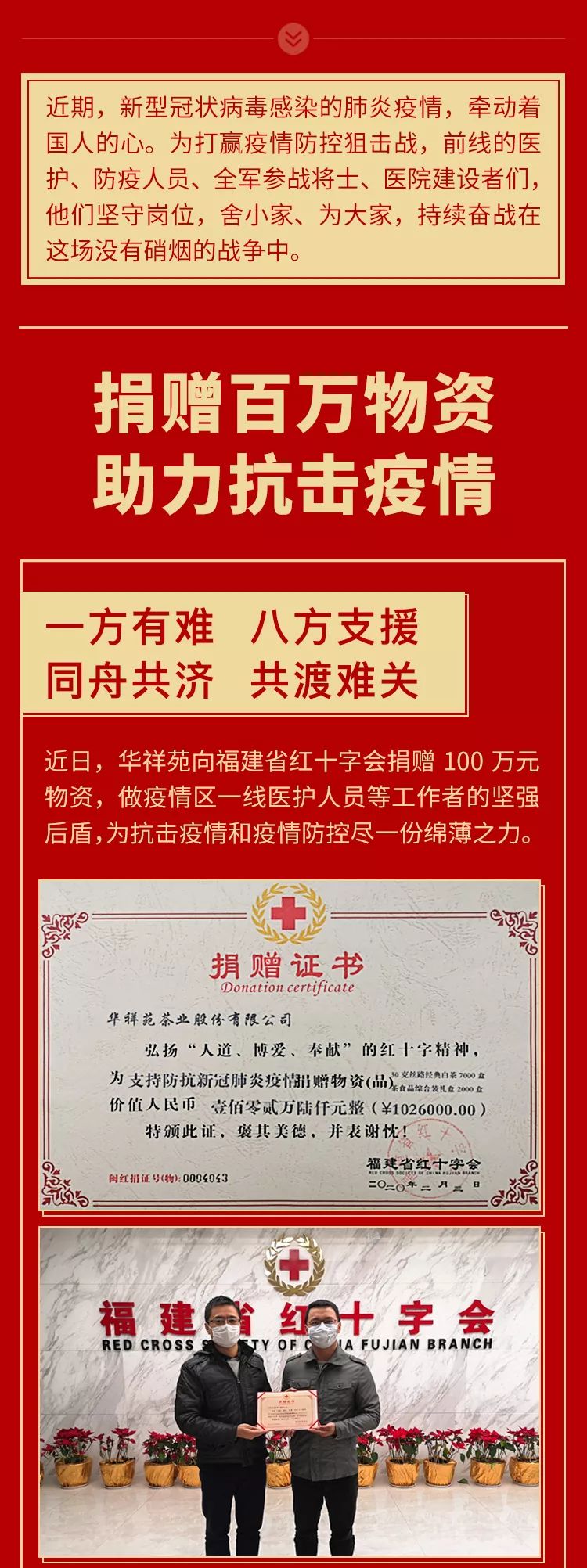 共克时艰,爱在行动!华祥苑捐赠100万物资到抗疫前线