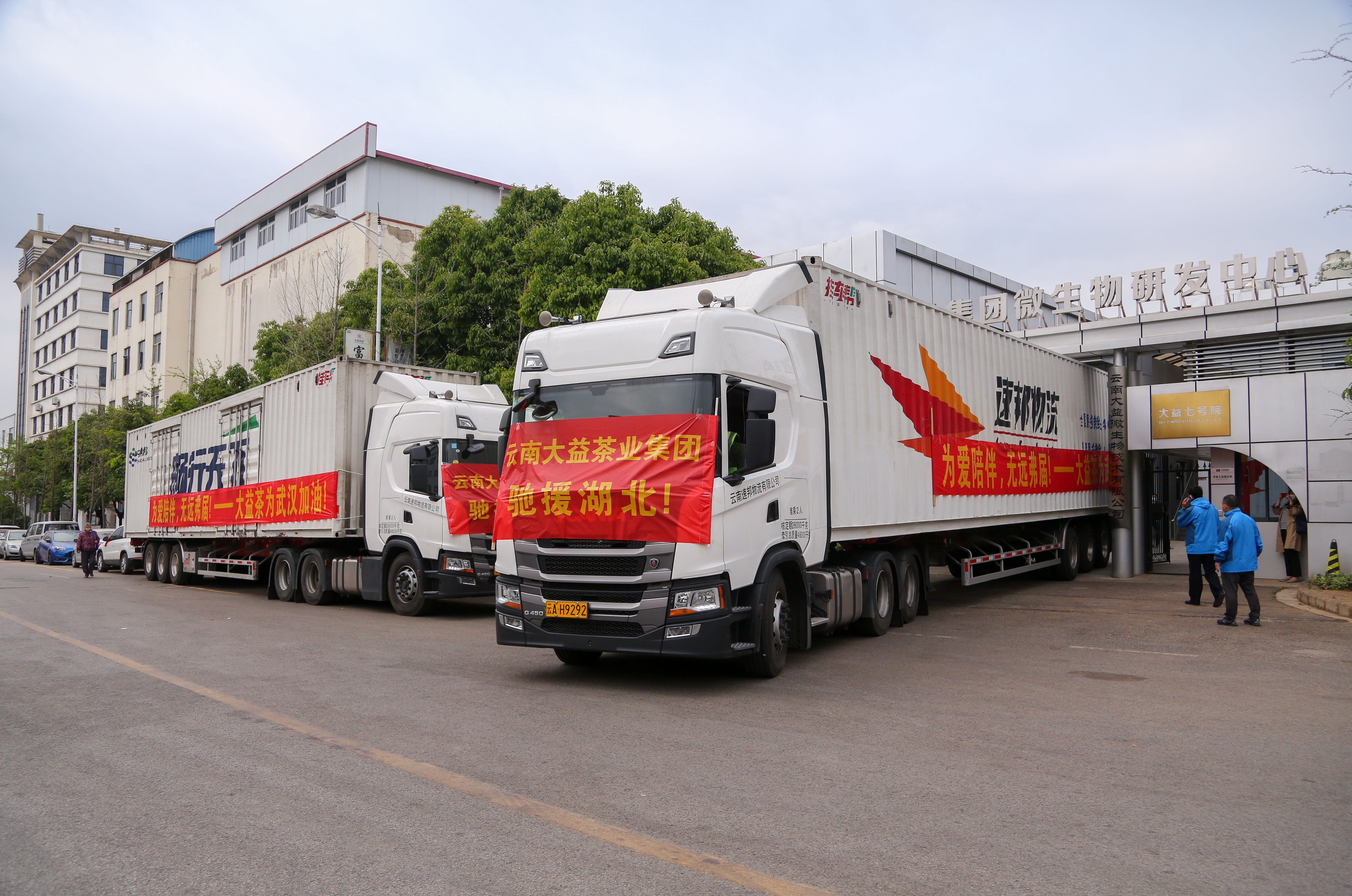 “大益茶为武汉、咸宁加油!”3月19日上午10点,大益茶业集团益原素茶饮料驰援武汉捐赠仪式在大益微生物技术有限公司举行,3辆载着10800件、64.28吨,价值160万元益原素普洱酵饮的卡车自昆明向湖北出发。