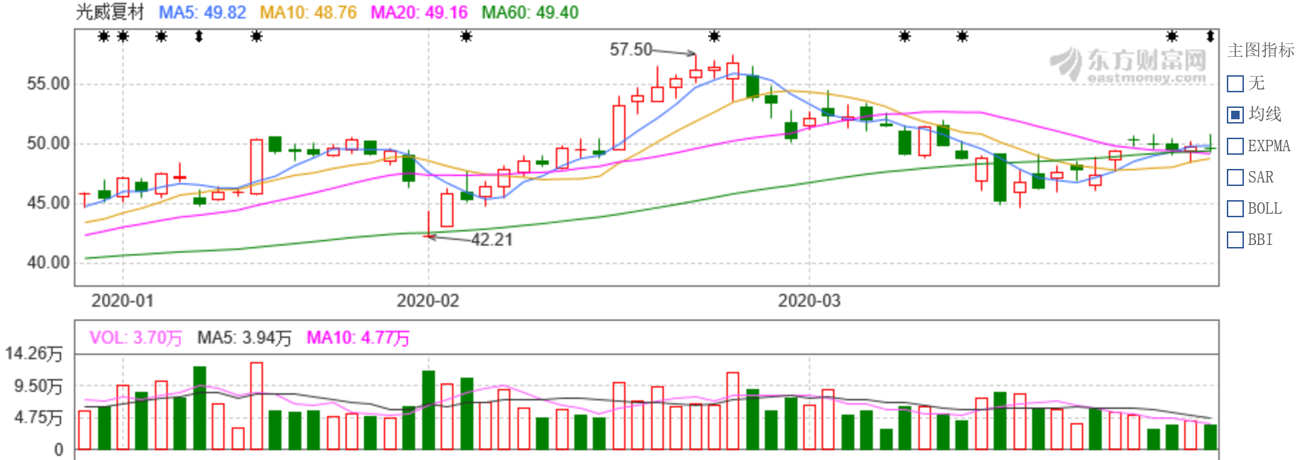 三是1季度期末公司股价与前60日移动平均价格M60相比,光威复材高出0.34%,体现了其高技术含量、军民两用的碳纤维新材料的抗风险能力,其他八家企业1季度期末公司股价均低于M60,差距最大的为创源文化,低于M60 24.45%,创源文化为外贸出口型企业,其近期股价走低与疫情影响导致出口贸易下滑相关。