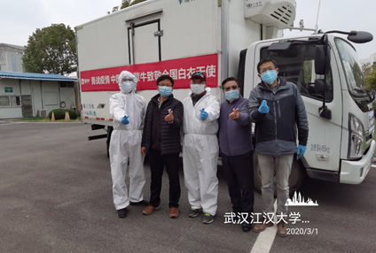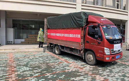 蒙牛捐赠物资车辆抵达武汉软件工程职业学院方舱医院