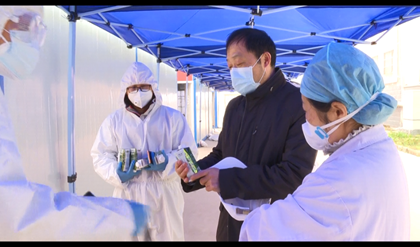武汉经济开发区区委常委张德华、武汉沌口方舱医院院长韩湘蓉查看捐赠物资