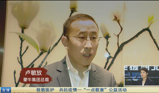 在这场抗战争面前,蒙牛集团将继续从经济责任、社会责任两个维度着力,发挥中国乳业国家队的能量,带动全产业链复苏,引领可持续发展,继续为抗疫一线提供坚强支持。