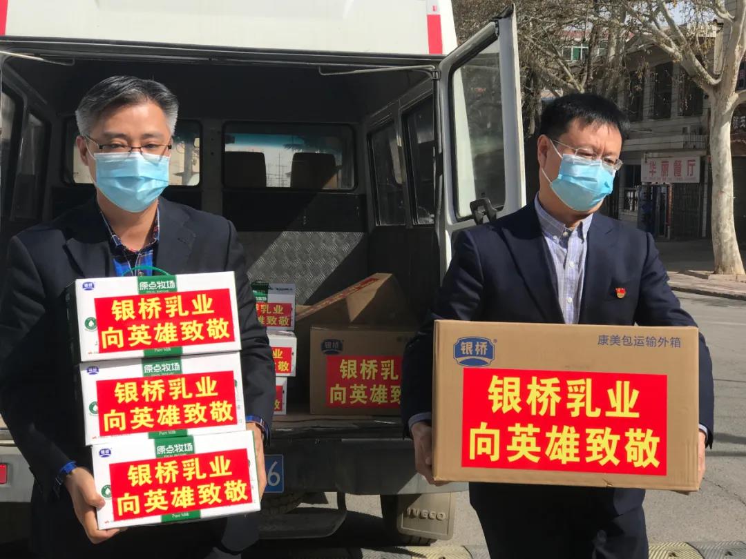 3月19日上午,西安银桥乳业集团第一时间为援鄂医疗队送来60箱高品质的银桥牛奶,表达对这些逆行而上的最美白衣天使们的敬意和感谢!