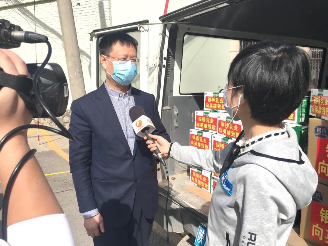 现场记者采访时,西安银桥乳业集团党委委员兼党办主任李西峰表示:这次的新冠肺炎疫情,很多医护人员肩负着医者的使命和责任,义无反顾地投身到战“疫”一线,以血肉之躯,不计回报守护人民生命健康,让我们深受感动。
