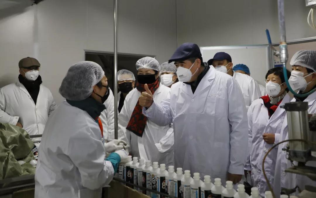 在一轻日化公司84消毒液生产线,苏志民详细了解了原料储备、生产能力、质量管控、产品投放等情况。他代表控股公司党委向坚守生产一线的广大干部职工表示慰问。