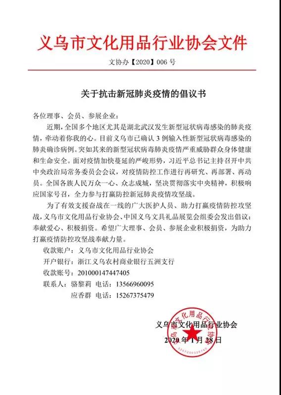 抗击疫情,义乌市文化用品行业协会在行动!捐款达137.102万元
