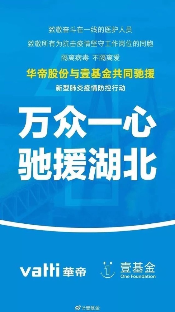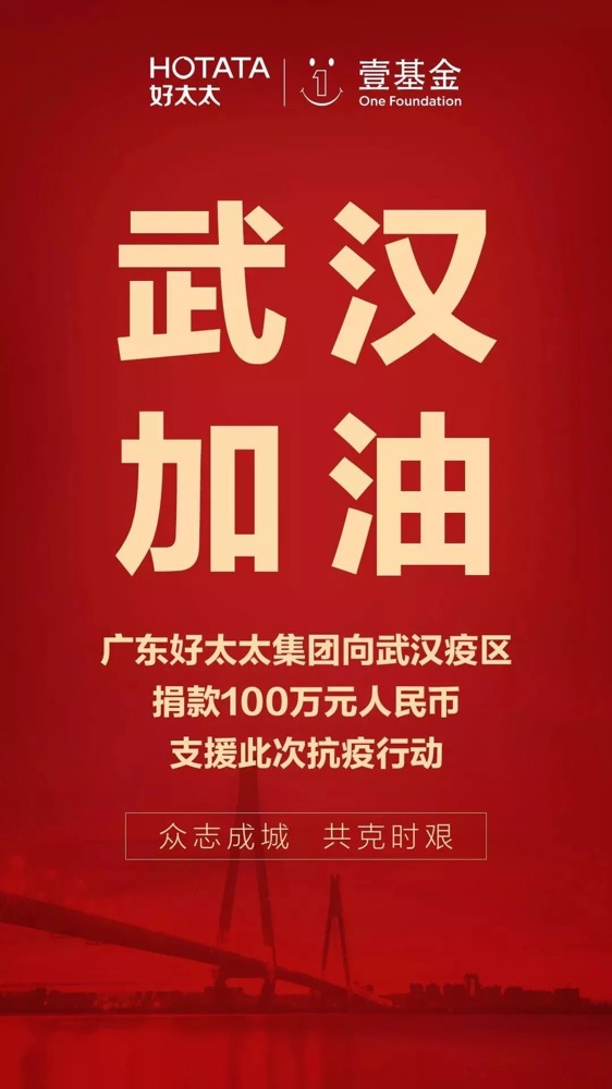 1月28日,好太太集团携手壹基金驰援武汉捐款100万,捐助款项将用于此次肺炎防控的相关措施。