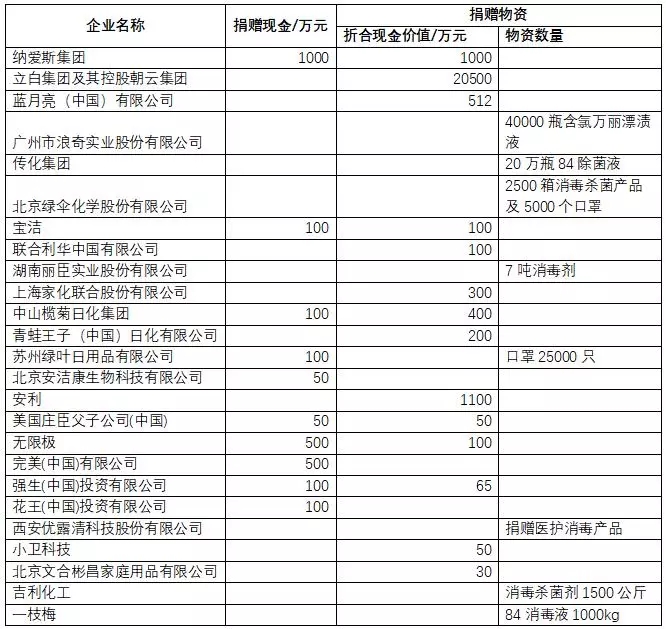 中国洗涤用品工业协会积极响应党中央、国务院号召,全力组织企业投入到抗击疫情斗争中。自协会于1月23日向全行业发出“全力做好消杀产品供应保障 坚决维护市场秩序”倡议后,洗涤用品企业纷纷响应,积极组织复工生产,并通过捐款捐物支援疫区及各地。