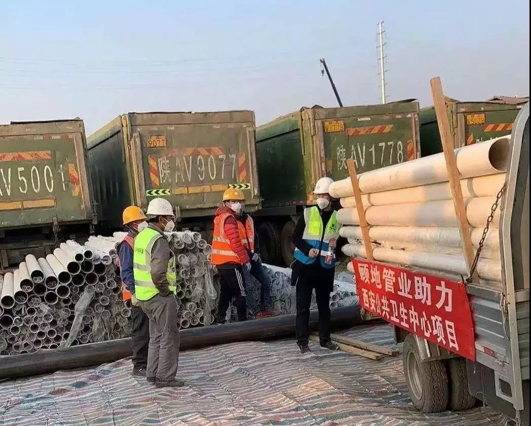 2月2日,重庆顾地与陕西世纪东泰新材料科技有限公司迅速筹备货源,为西安“小汤山”工程提供服务,尽心尽力做好排水管道产品的备货、运输、技术指导等工作,为西安“小汤山”工程的顺利完工贡献力量。2月2日上午,重庆顾地与陕西世纪东泰新材料科技有限公司筹备的管材管件到达项目工地。
