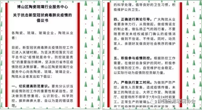 当前,新型冠状病毒感染的肺炎疫情的防控工作牵动着全国人民的心。自疫情防控工作启动以来,中国琉璃之乡——山东省淄博市博山区,区陶瓷琉璃行业服务中心严格贯彻落实国家、省、市、区疫情防控工作会议精神,迅速行动、积极应对,加大宣传引导,助力疫情防控。