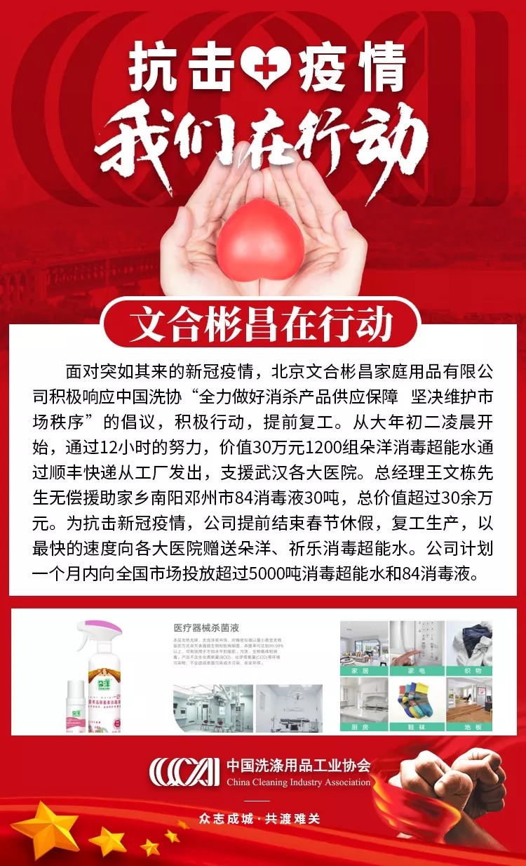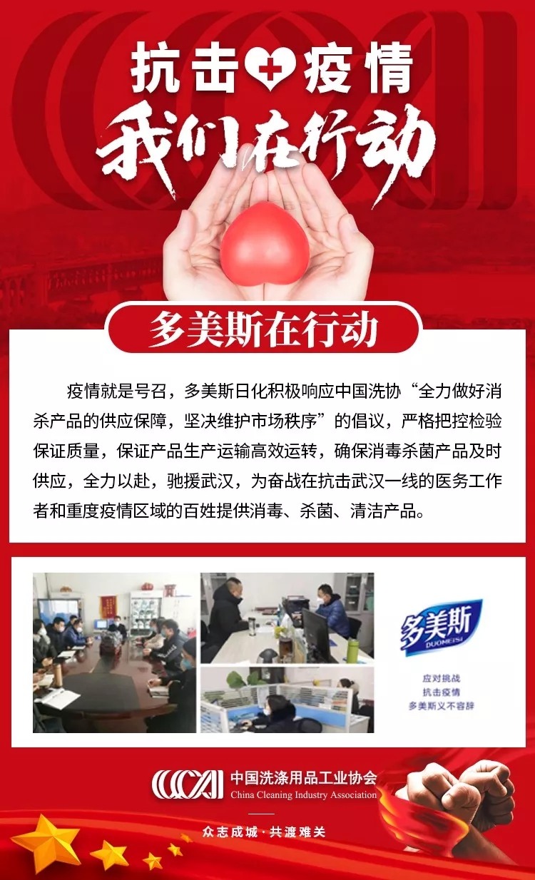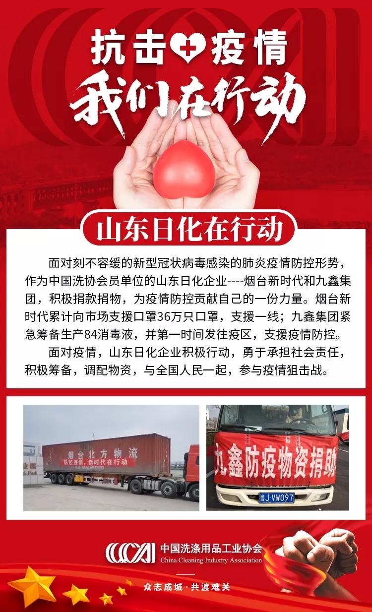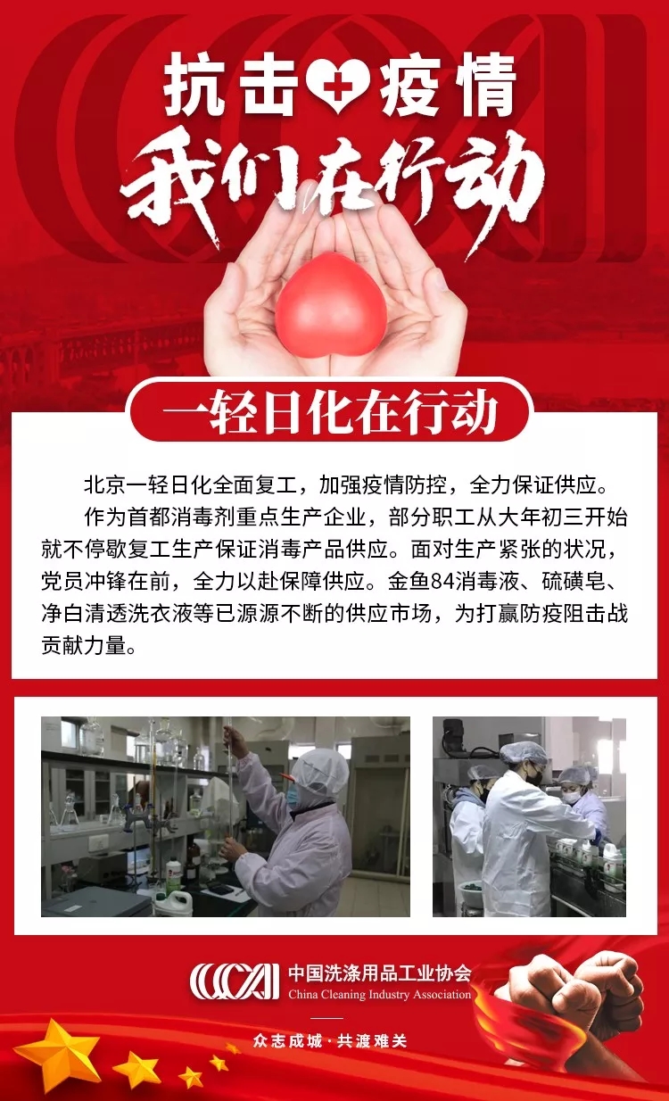 自1月25日起,中国洗涤用品工业协会联合中国工业报、消费日报等中央媒体,开展“抗击疫情——我们在行动”系列宣传报道,广大企业积极响应、踊跃投稿110篇,全面展示企业春节期间争分夺秒、抢抓生产、捐款捐物、驰援疫区的先进感人事迹!