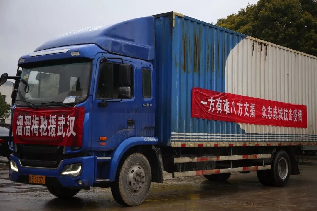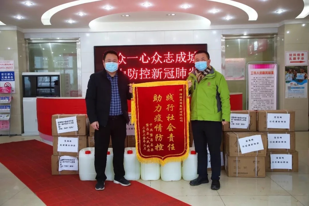 2月6日,溜溜果园集团股份有限公司通过总部所在安徽省芜湖市繁昌县政府捐赠50万元人民币,用于疫情防控工作,并紧急调拨一批爱心物资于2月7日发车,驰援武汉,这批物资包括青梅制品24000件、医用乳胶手套20000双、医用防护服、84消毒液、抑菌洗手液等。