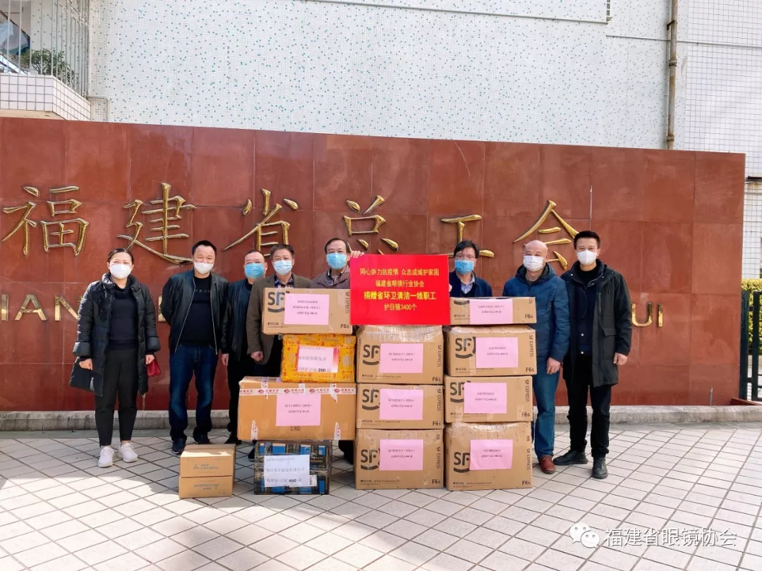 2月14日我会与省总工会共同发起“防控疫情,保障环卫工人安全——为奋战在第一线的环卫工人捐赠防护物资活动”,福建省眼镜协会会长、理事、监事等单位共征集捐赠护目镜3400付。