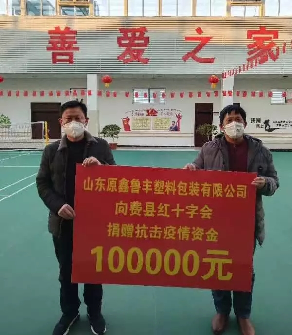 山东原鑫鲁丰塑料包装有限公司向临沂市费县红十字会捐赠10万元,用于当地抗击疫情工作。