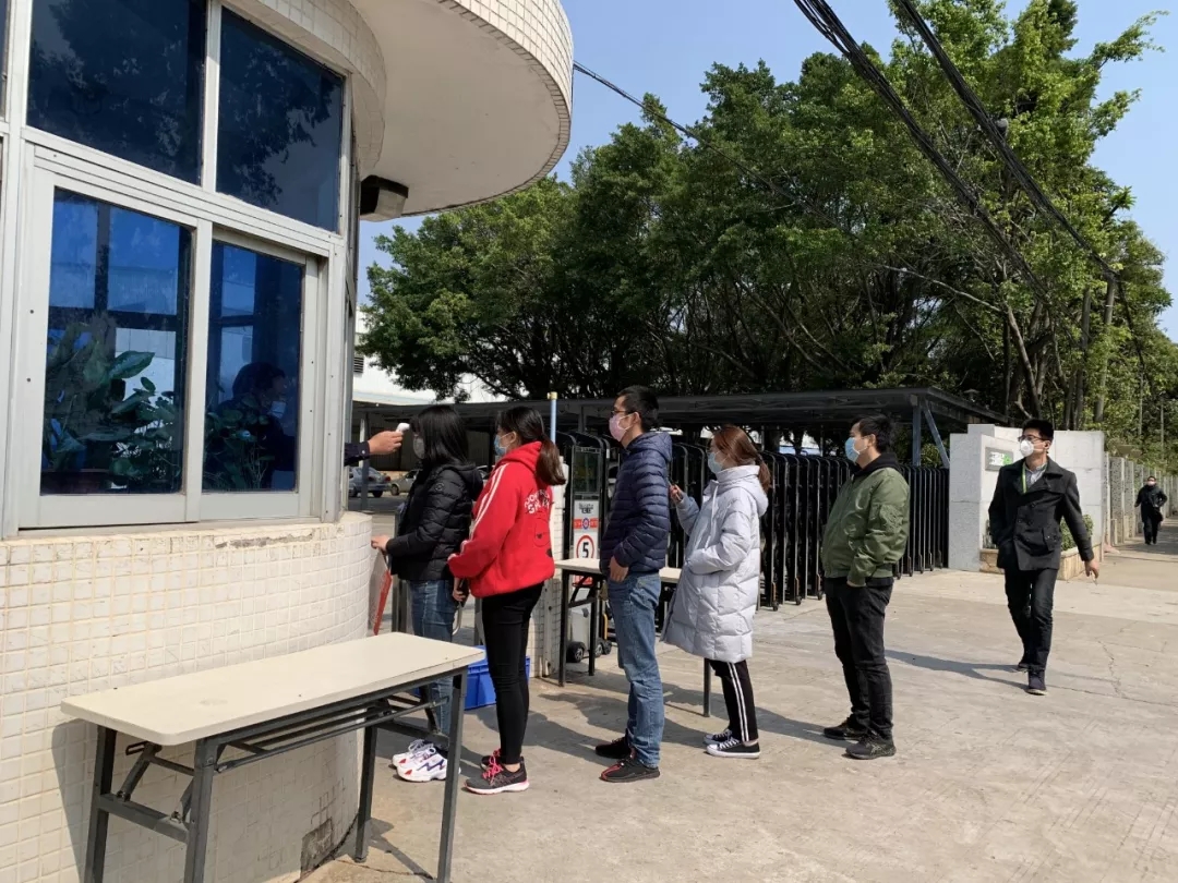 2月17日,三雄极光总部正式复工。所有员工进入厂区必须佩戴好口罩,双手、鞋底需进行彻底消毒,经工作人员进行体温测量正常之后(每天至少2次体温监测,全员留档)均可回到自己的工作岗位。上班期间,办公室人员全程佩戴口罩,并采取线上交流的模式,避免人与人面对面接触。疫期间,减少聚集性会议,提倡采用移动平台召开视频会议。