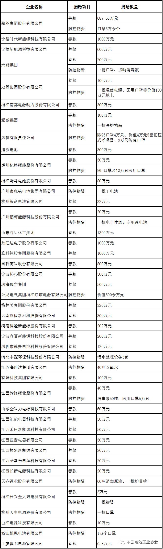 共抗疫情,传递温暖∣ 中国电池企业爱心捐助统计