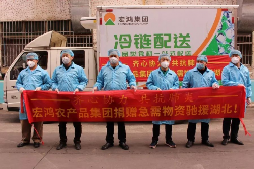 2月9日,挂着“齐心协力 共抗肺炎 宏鸿农产品集团捐赠急需物资驰援湖北”“众志成城 湖北加油”横幅的爱心冷藏车,满载着近40000斤灾区急需物资从宏鸿农产品集团总部驶出,25个小时之后,第一批急需物资运抵湖北省孝感市。这批物资包括:猪肉、冷冻品、蔬菜等总价值近30万人民币的灾区人民急缺的农副产品。 详细