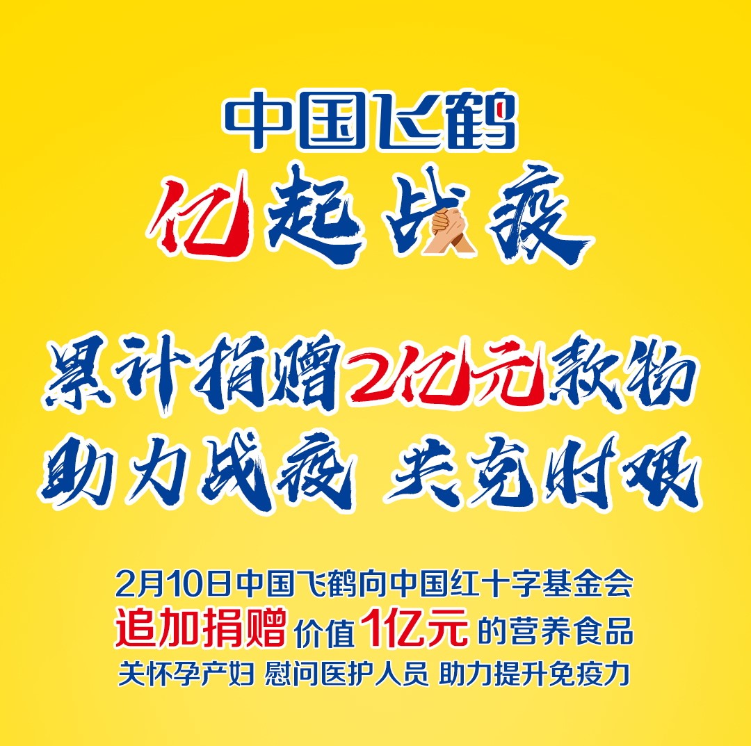 作为关乎国民营养健康的乳品企业,中国飞鹤积极响应党和政府号召,不仅向疫情一线捐赠价值2亿元的款物,更承诺在疫情期间严控产品质量、保障市场供应、提升服务水准。通过“保价格、保质量、保供应”的有力举措,中国飞鹤切实保障了亿万中国宝宝不断口粮,助力维护我国婴幼儿奶粉市场稳定。  详细