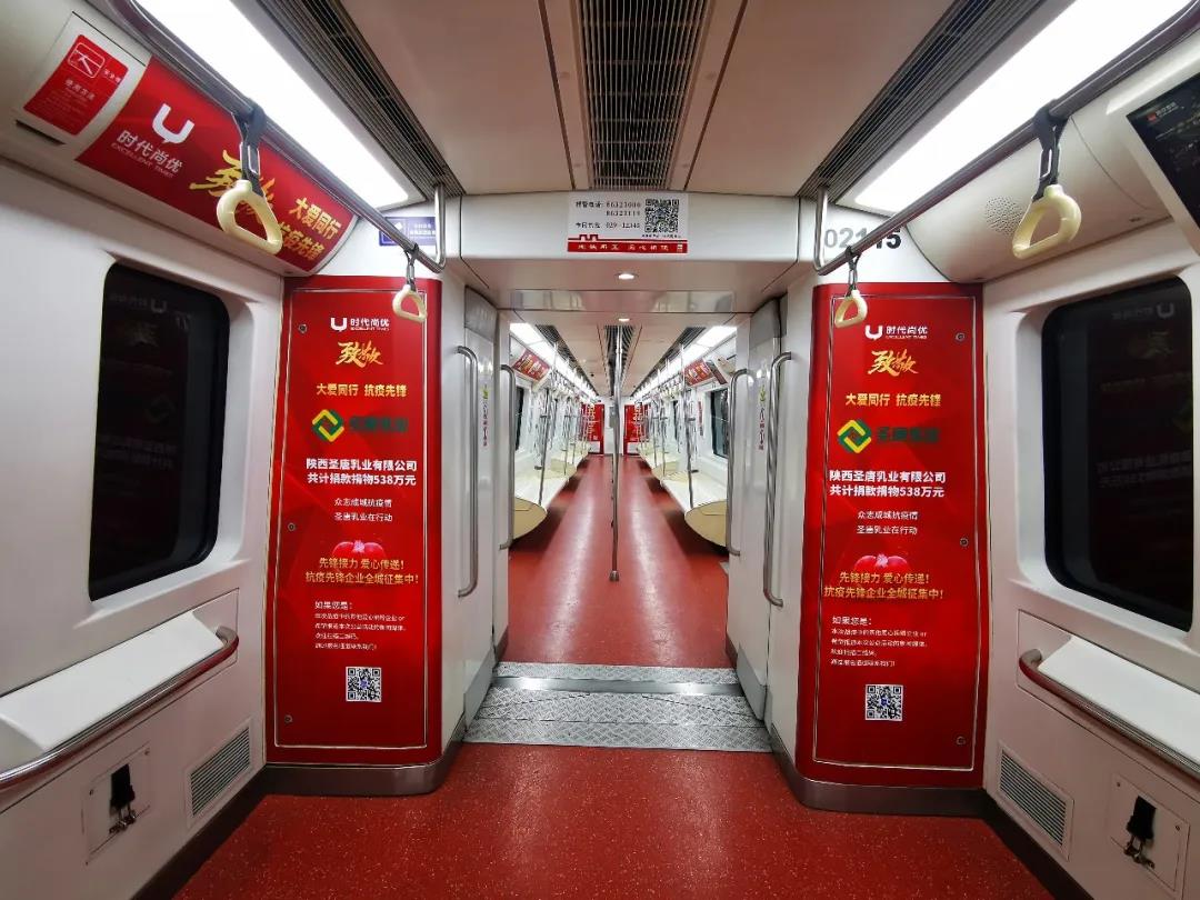 2月中旬,为向在抗“疫”战争中积极行动的爱心企业致敬,西安时代尚优传媒集团携手陕西省慈善协会,捐赠8列西安地铁2号线列车广告资源,用于“大爱同行 抗疫先锋”公益专列免费宣传。 详细