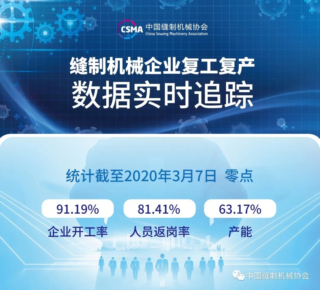 为进一步了解新冠肺炎疫情对我国缝制机械企业生产经营情况的影响和企业复工复产工作进展,中国缝制机械协会于3月3日-6日在会员企业范围内开展了第二阶段企业复工情况问卷调查。截止3月7日零点,协会累计收到问卷及电话方式调研共228家会员企业,其中整机企业124家,占54.3%;零部件企业74家,占32.4%;商贸企业30家,占13.3%。 详细