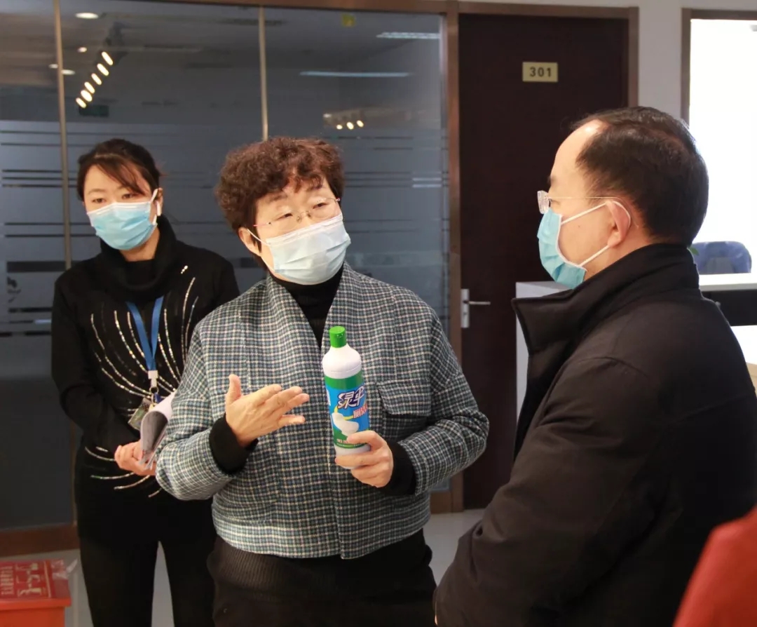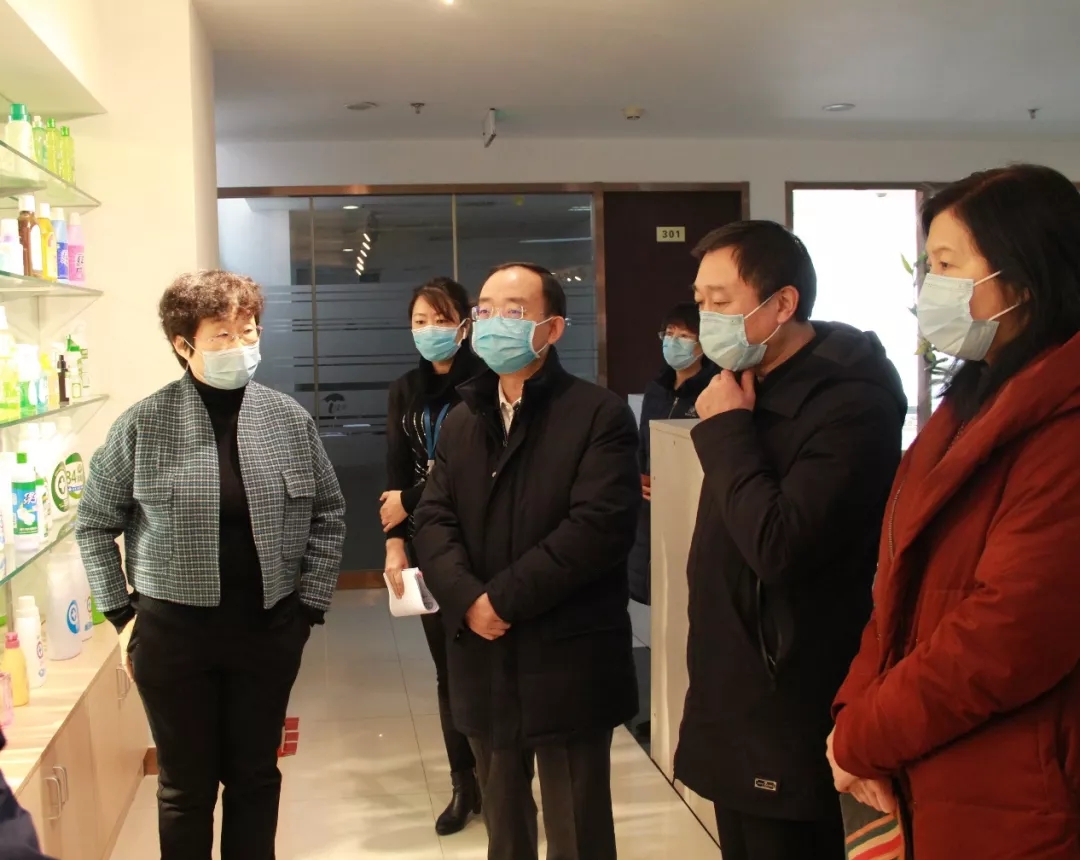 首先,北京市市委常委、统战部长齐静、北京市市委统战部副部长、市工商联党组书记赵玉金,北京市工商联副主席郑勇男,北京市工商联经济处处长朱强一行来到绿伞公司视察指导新冠肺炎疫情防控工作。绿伞化学董事长兼总经理魏建华向齐部长一行介绍了绿伞对疫情防控所做的工作、防控物资供给情况、原材料供应情况以及企业复工进度等。视察中,齐静部长对绿伞疫情防控工作给予了充分肯定。