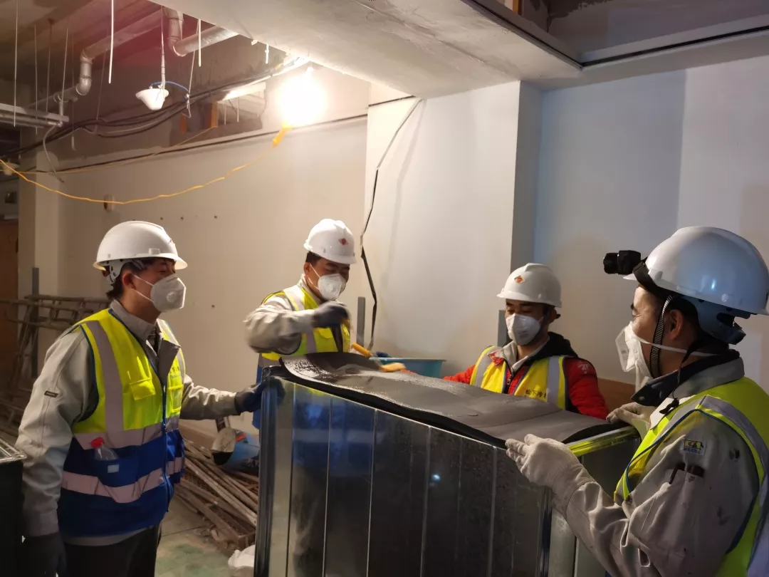 为更好的抗战疫情,辽宁省新型冠状病毒感染肺炎集中救治中心(大连)落户大连市第六人民医院,55间病房需要全部改造成室内气压负20帕,满足国家卫健委诊疗规范中治疗新型冠状病毒感染的肺炎的整体要求。冰山集团临危受命承接其中风道安装和保温工作,工期仅有3天。2月6日,冰山集团向松下冷机系统(大连)有限公司(PAPRSDL)提出增援要求,PAPRSDL高度重视,立即安排落实,从包括庄河在内的全大连抽调一线员工,火线增援。是日12点,PAPRSDL的17名员工集结完毕,到达施工改造现场后迅速了解工作内容,昼夜奋战地投入到打好风道安装这项阻击战中。