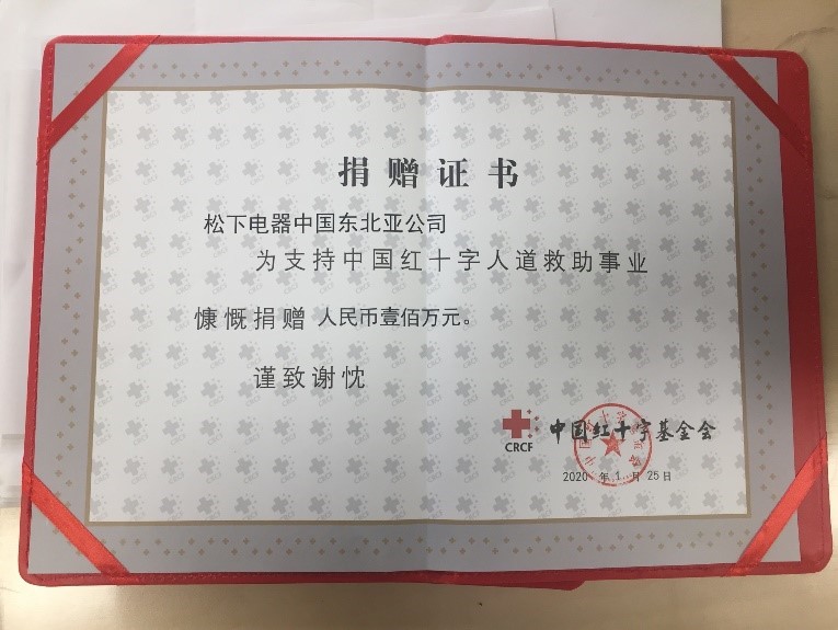 1.松下电器(中国)有限公司,2020年1月25日向中国红十字会捐赠100万元人民币,用于购买医用口罩、防护服、护目镜等防疫物资。
