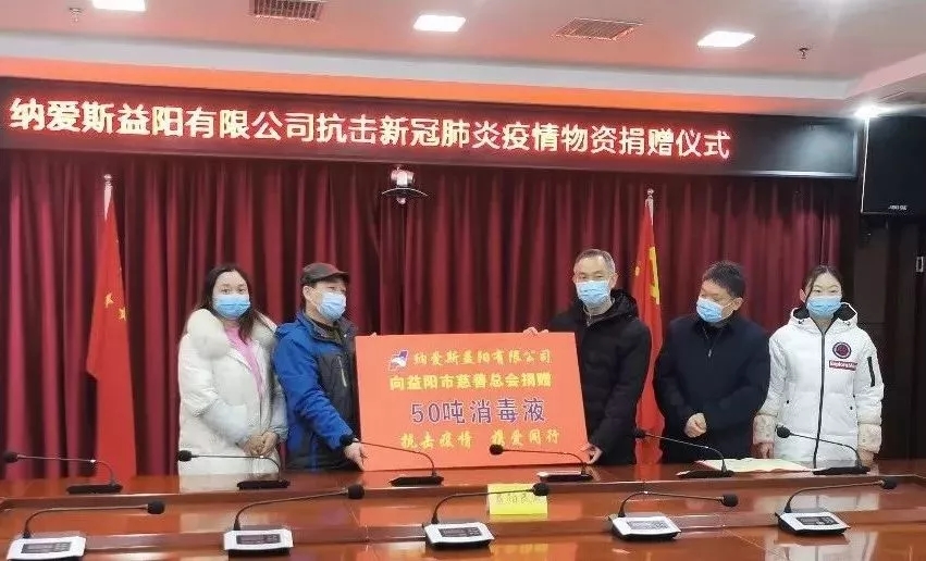 2月12日,纳爱斯益阳基地联合益阳市慈善总会,将加紧生产的50吨消毒液定向捐赠给疫情防控一线,助力抗击疫情。