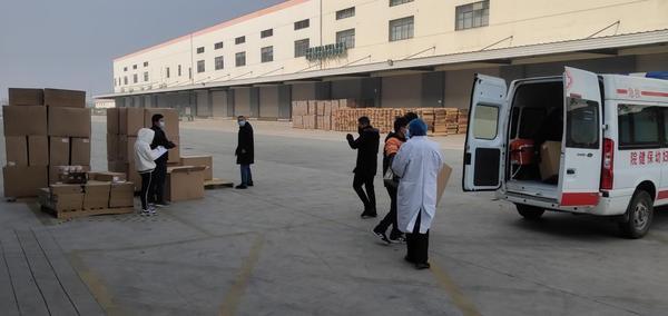 孝感市部分医院前往提货点领取百草味捐赠物资