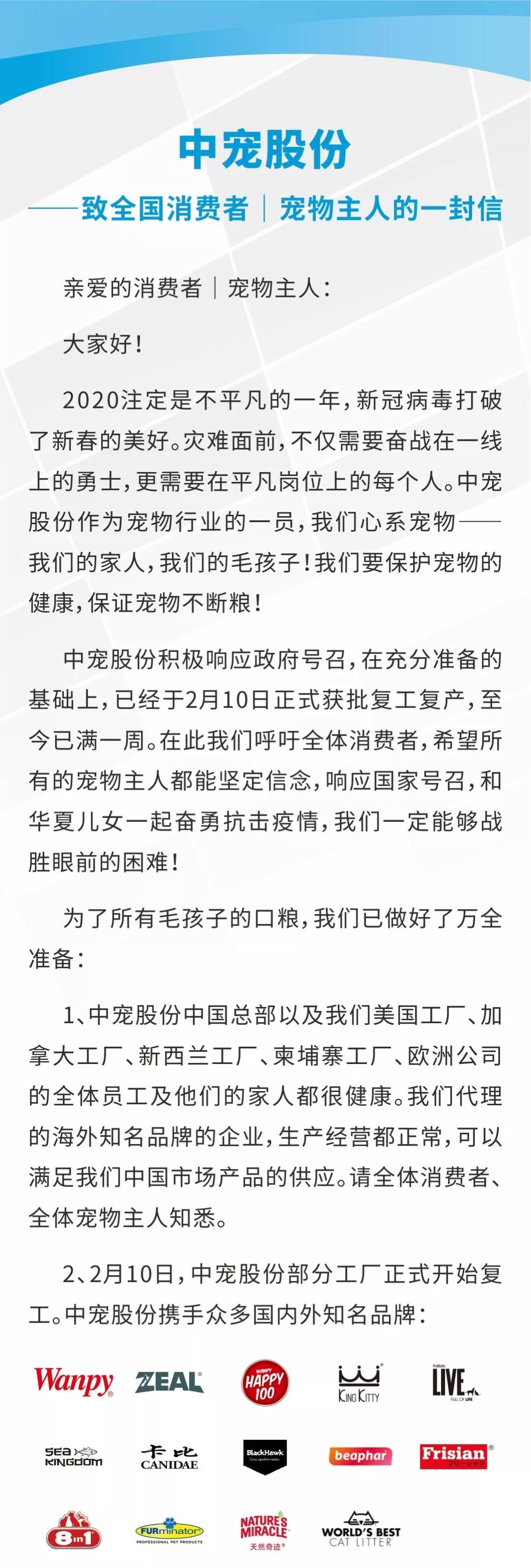 中宠股份——致全国消费者 | 宠物主人的一封信