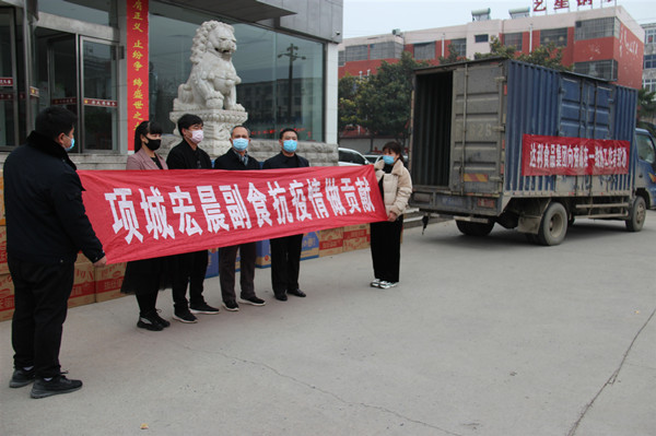 2月14日下午,达利食品集团项城宏晨副食经销部经理朱高强一行四人开车将价值2万余的副食送到项城法院,慰问战斗在一线疫情防控的法院干警,表达对坚守防控一线干警的感激和支持。