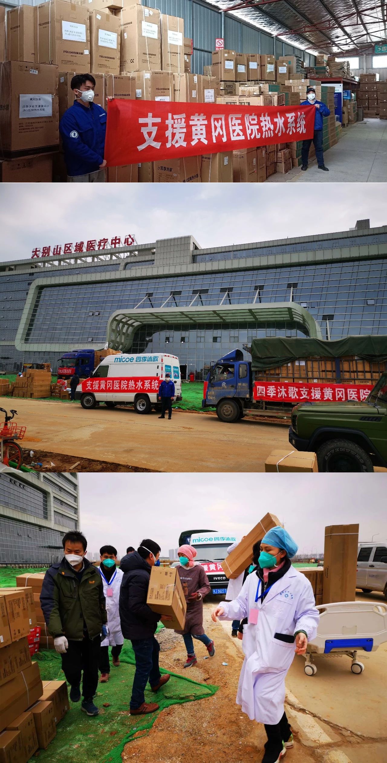 由于疫情肆虐,1月28日晚,黄冈版“小汤山医院”——大别山区域医疗中心启用。为有效抗击新型冠状病毒感染肺炎的疫情,完善黄冈小汤山医院配套热水设施,四季沐歌再次伸出援手,向黄冈小汤山医院捐赠100套热水系统,帮助一线医疗工作人员和患者做好自我防护工作,减少二次交叉感染。