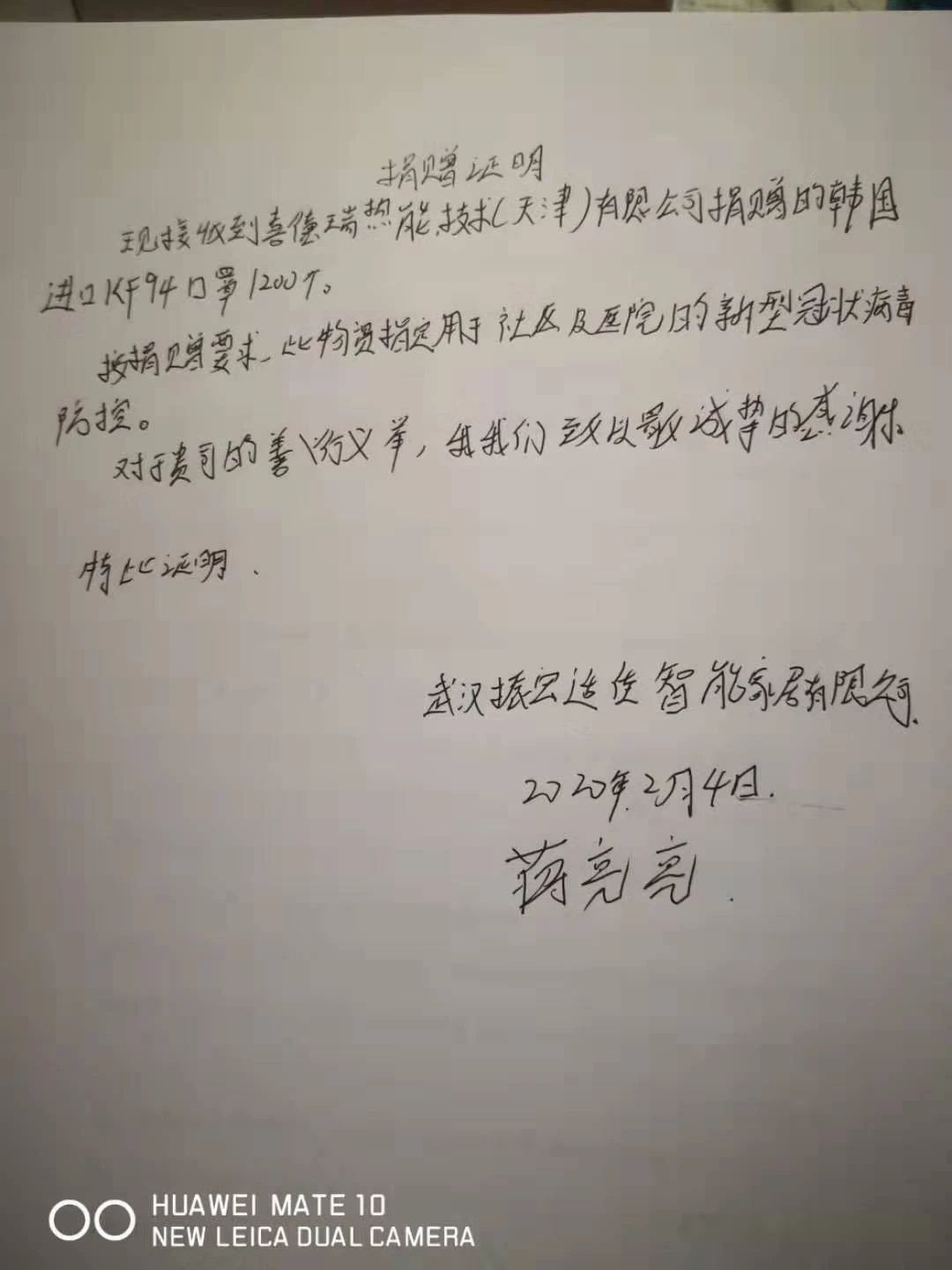 经销商手写捐赠证明