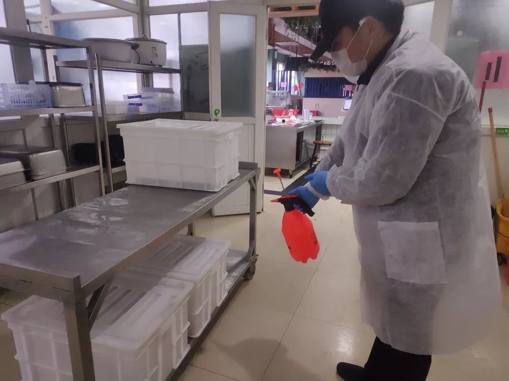 在餐厅加工、生产区域全面消毒的基础上,餐厅采取配餐制度。配餐时,盒饭按批次分装送到就餐点。同时,餐厅准备的一次性餐盒、一次性筷子、一次性手套也为就餐员工提供了多一重的保障。