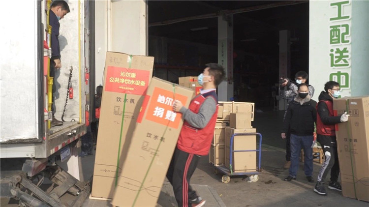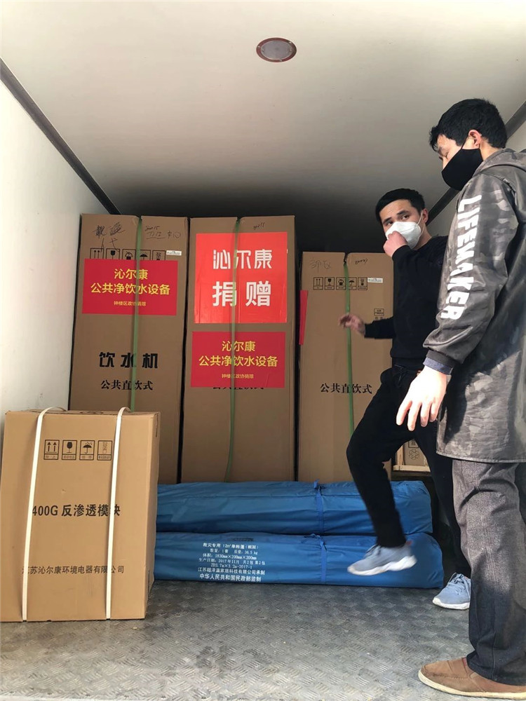 2月8日,沁尔康运维部的售后工程师在充分做好防护措施的前提下,逐个斟察了10家受赠单位的安装场所,并根据现场实际状况做出了设备和安装方案。2月9日上午,10套净水设备随钟楼区政协慰问物资一道,送到了每个受赠点。