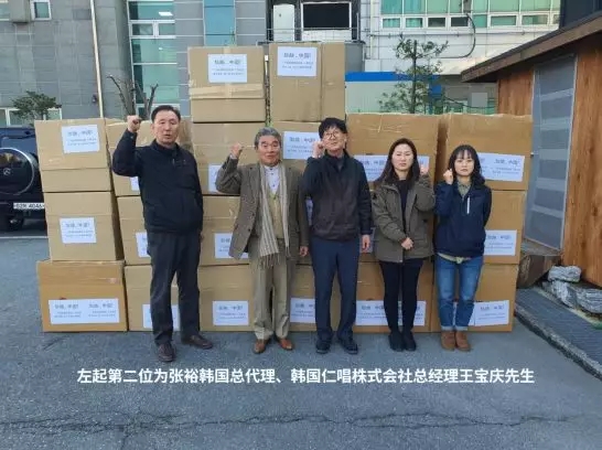 “中国加油!”来自韩国仁唱株式会社的王宝庆先生,将首批12000个口罩紧急空运,和他的祝福一起回到国内。王宝庆先生祖籍烟台养马岛,是张裕公司的韩国总代理,得知祖国疫情后心急如焚,不顾刚出院的身体,七十多岁还亲自四处奔波,在韩国各地紧急采购防疫物资,并无偿捐献回国。