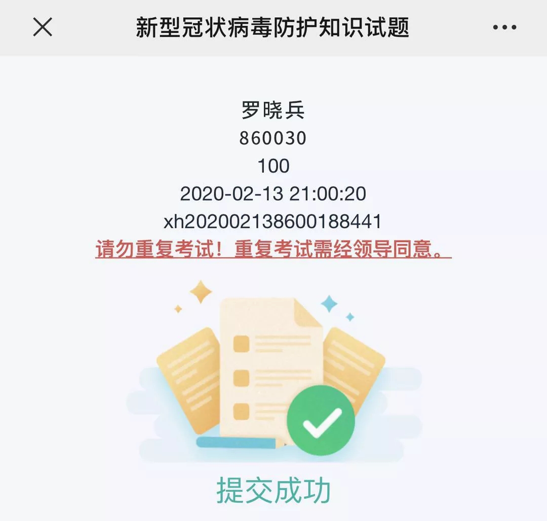 考试,对罗晓兵来说“小菜一碟”,原来,新海集团每天都会对员工进行线上防疫知识培训,认真培训,应对考试游刃有余。100分,当交卷后手机弹出分数后,罗晓兵舒了口气,准备起返回慈溪的行李。