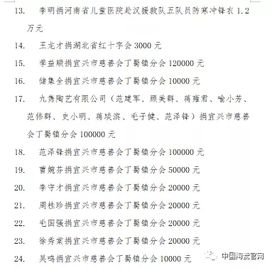 宜兴市陶瓷行业协会1月29日向各分会、各陶瓷企业及全市陶艺工作者发起倡议书,号召广大紫砂从业人员发扬热心公益事业的优良传统,向慷慨解囊的紫砂艺人学习并通过市、镇慈善机构积极付诸行动。以史俊棠会长为首,顾勤、九隽团队、范泽锋等陶艺家们率先捐款,大家纷纷响应。据不完全统计,截止2月20日,宜兴陶艺、紫砂界有915 人为“冠状新型肺炎”疫情捐赠慈善爱心款,总计395 万。