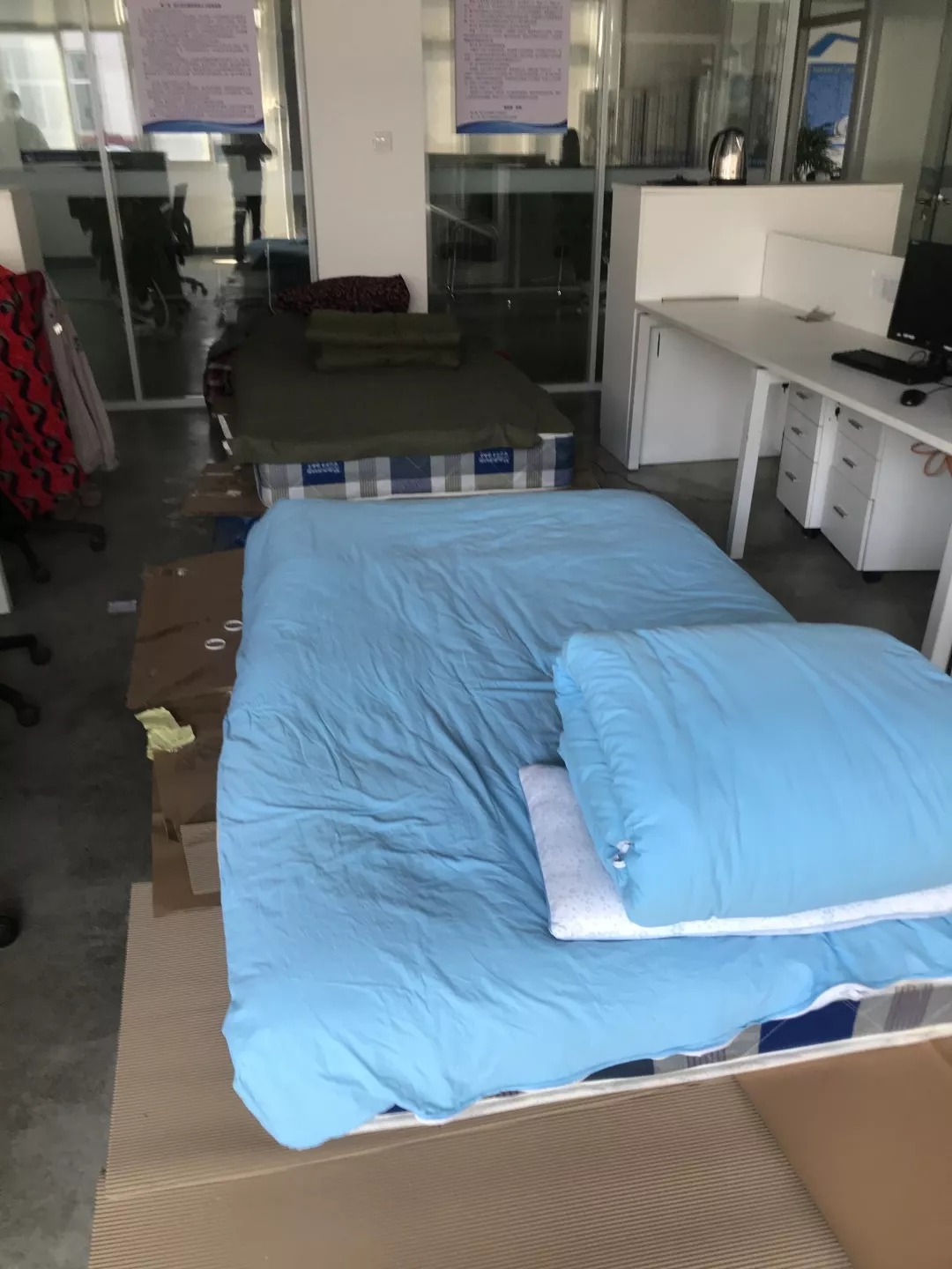 1月27日(大年初三)开始,益盐堂(应城)健康盐制盐有限公司开始电话值班,1月28日开始召开开工部署大会,做好开工安排与疫情防控安排,1月29日开始恢复正常生产。2月13日之前,虽然公共交通停止运输,一线的生产工人克服苦难,通过走路,骑自行车,电动车等方式前行上班。疫情蔓延,作为重灾区的湖北,防控工作更是严峻。2月14日以后防控部门要求“所有城镇居民,必须足不出户,所有车辆(包括自行车,电动车)禁止上路。”,为保障生产,一大批益盐堂人自愿入住公司,24小时禁足厂区,带着简陋的生活用品,以厂为家。 为了保障驻厂工人的健康防护和基本生活,益盐堂生产厂区,每天有专人多次全范围消毒,为每位员工做好体温监测,个人消毒工作,并提供防护口罩,让员工尽量在全厂分散居住。至于基本生活,非常艰辛简陋,他们24小时呼吸着浓烈刺鼻的消毒水,他们吃着简单的饭菜,他们睡在铺着纸板或床垫的地板上,他们用着临时搭建的洗澡间,他们是最可爱的人! 以厂为家,24小时坚守一线 图一:生活用品摆台; 图二、图三:床铺一览; 图四:洗澡间; 在事业部总经理的关怀下,副总经理陈学德和生产厂长李银海的带领下,所有的车间主任和班长自愿坚守一线。2月15驻厂开工开始,库房、设备、安全环保等各部门高效协作,累计40余员工在岗 ,集中在一个生产车间,每天工作时间超过10小时,以此保障了十条生产线的正常运行,配合销量需求调整生产计划,可达到食用盐袋装日产量200-250吨,箱装产量100吨。 “疫情之下,为保障生产,我们不分领导和员工,无论是什么苦活、累活,哪里有需要,所有人都是一起迎难而上,保证完成销售订单”生产厂长李银海说。 以厂为家,一线生产图 图一:一线生产车间图; 图二、图三:原材料,食用盐,生产发运; 图四:严格消毒,健康防护; 这群“益盐堂人”也是血肉之躯,也有妻儿老小,但生产任务就是命令,坚守便是担当,他们任劳任怨,服从安排,勤勤恳恳,乐于奉献,舍小家为大家。因为他们知道,这场战役没有硝烟,谁也不知道结束时间,唯有坚守岗,和企业同呼吸、共患难才能获得最后的胜利。
