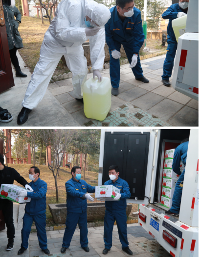 生命重于泰山,疫情就是命令,防控就是责任。2月11日一大早,陕西柳林酒业集团有限公司总经理柳林、副总经理周峰、行政副总吕广田、财务副总杨永忠一行,带着两车防护物资,来到凤翔县应对新型冠状病毒感染肺炎疫情防控指挥部。总经理柳林代表董事长付小铜先生向凤翔县捐助了5000斤消毒液、190箱苹果。凤翔县副县长牛建强代表凤翔县人民政府接受了公司捐赠,对陕西柳林酒业集团有限公司勇于担当、在关键时刻奉献爱心表示衷心感谢,并为公司送上了:“应急关头最暖爱心捐助,疫情防控方显责任担当”的锦旗。
