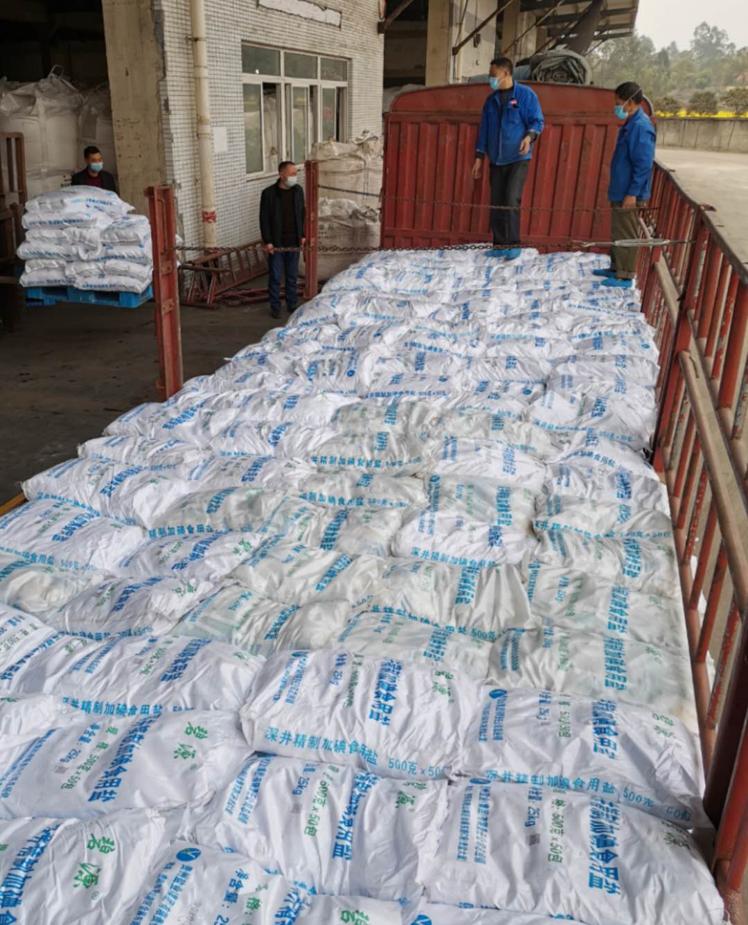 公司成立了以总经理为组长的疫情防控领导小组,严格落实各项防护措施。全体员工齐心协力,同舟共济,迅速进入保供生产,在疫情紧张,运输受阻情况下完成贵州省紧急小袋盐保供调运7818.5吨、陕西储备盐60.5吨、商超及企业5300吨,共计13000吨。