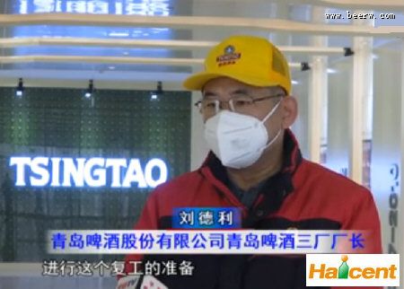 青岛啤酒三厂厂长刘德利:“现在我们青岛啤酒三厂正在进行100万吨的扩建,原来计划要5月31日完工,现在看来有所滞后。我们也在想方设法、争分夺秒争取把这个疫情给我们造成的损失降到最低,甚至我们要挽回损失。今年我们肯定还会增长,我们对完成今年的任务还是充满信心。”