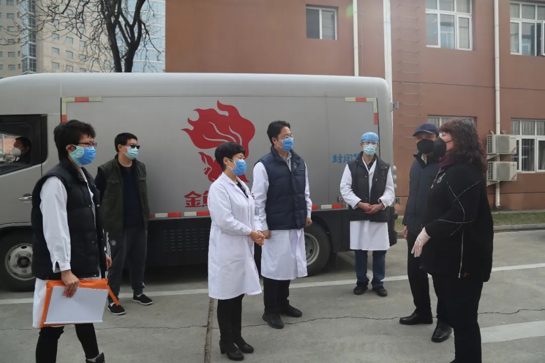 安贞医院援鄂医疗队 北京安贞医院办公室主任吴兴海、总务处处长王鹏飞、医工处处长吕飙、副处长骆希青接收捐赠物资 两家医院接受捐赠负责人感谢北京一轻日化的大力援助,并表示自疫情发生以来,全体医护人员取消假期行程、放弃休假,随时投身防控疫情的第一线。在每一次祖国需要、人民需要的时候挺身而出、使命必达!面对疫情,选择冲锋在前,勇敢前行!全体医护人员将与全市人民、全国人民一道为抗击疫情奋斗并取得最后的胜利。