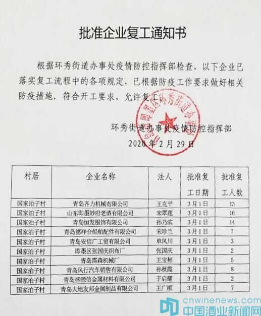 1)紧密联络返工人员以及当地政府有关情况,为妙府老酒复工生产做好准备;