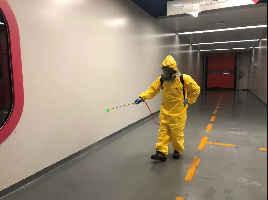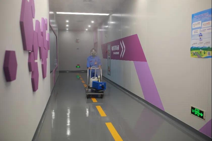 疫情发生后,所有生产车间走廊、楼道等均采用自动喷雾器,定期用消毒水进行全面消毒。